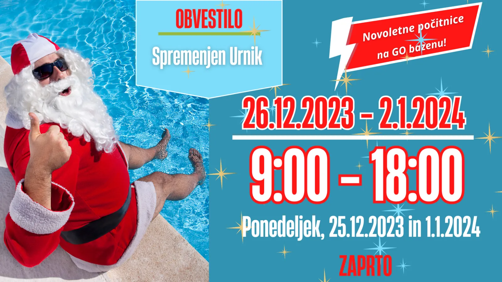 URNIK na bazenu med NOVOLETNIMI POČITNICAMI